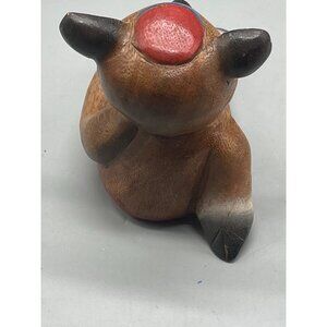Wooden pig laying on back hat belt wood red black blue brown width 7X4.5" READ