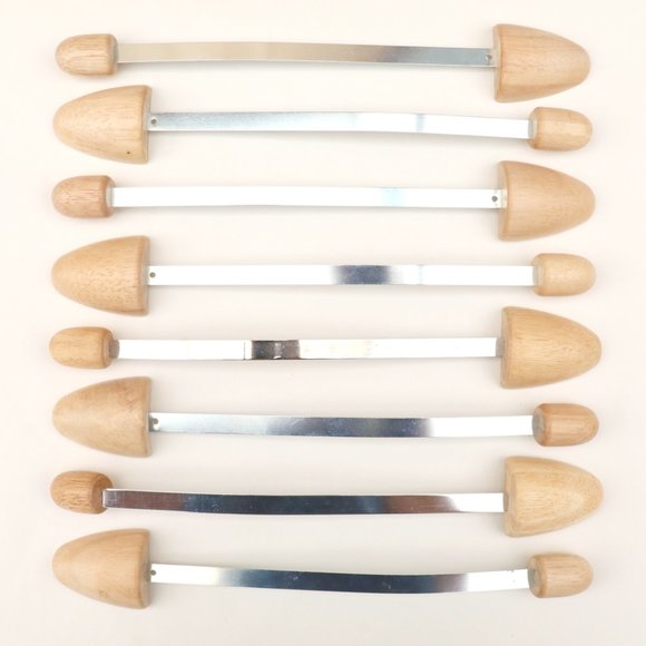 Set of four light weight shoe trees specifically made for pointier toe shoes. Thin steel bars bend easily.