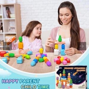 Brand new!! 40PCS Wooden Stacking Rocks Toys, Montessori Toys for 1 2 3 year old, Stacking toys for Toddlers, Sensory STEM Preschool Learning Building Blocks Toys for Kids age 3-5, Kids Games Gifts for Boys Girls!!! Bundle up to save on shipping!!