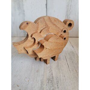 Wooden 3 Piece Pig Puzzle jigsaw Standing Up Farm Pig animal Country Farm House Decor shelf desk display