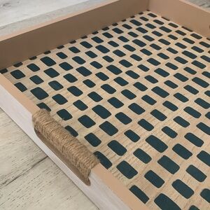 Wooden tray large oversized printed teal with handles new home decor traditional