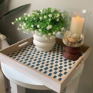 Wooden tray large oversized printed teal with handles new home decor traditional