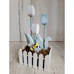 Wooden tulip flower bee spring home decor unique bug april
