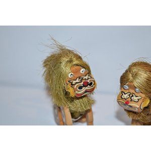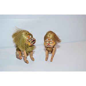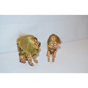 Wooden w/ Rope Lion Hand Made Tribal African Souvenir Collectible figures 2 pc