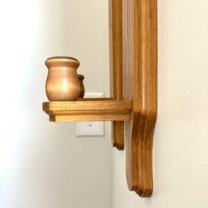 Wooden wall sconces for tapered candles. Really nice condition with no cracks or marks in the wood. Solid with no looseness.