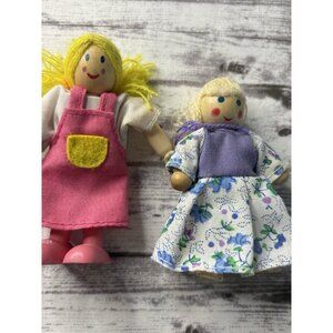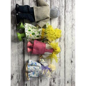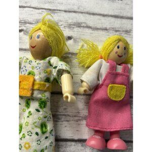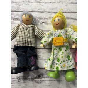 Wooden-Poseable Doll Family 4 Figures Set-Fabric Clothes-Dollhouse