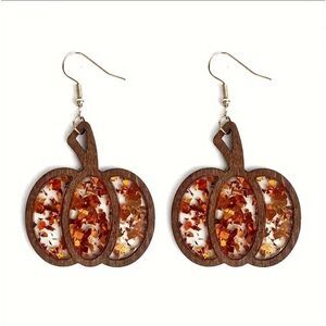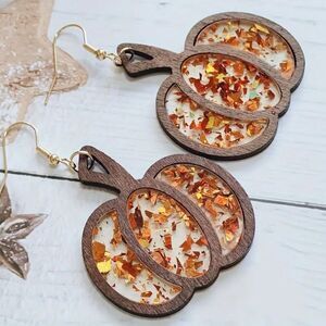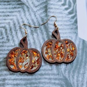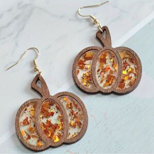 Wooden Pumpkin Drop Glitter Earrings.
