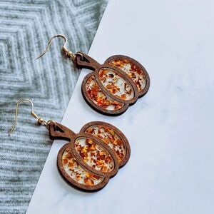 Wooden Pumpkin Drop Glitter Earrings