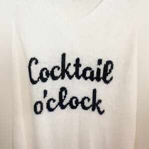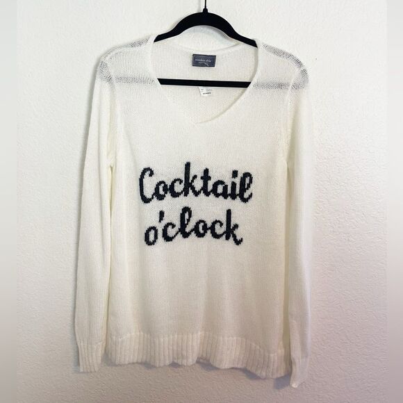 Wooden Ships Cocktail O'Clock V-Neck Lightweight sweater in cream. XS NWT
