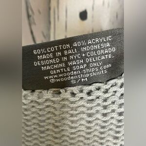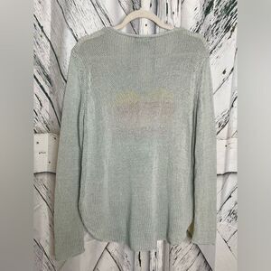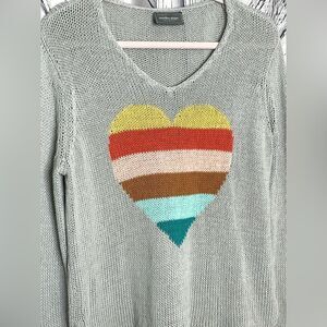 Wooden Ships Gray Striped Heart Knit Sweater Size Small/Medium