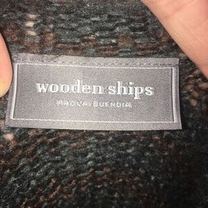 Wooden Ship super soft, luxe, soft loose weave cardigan with shaggy drape front. Brown and blue stripes. In great shape! Missing the care/size tag. Approximately 19 inches from armpit to armpit, 26 inches long. From a pet and smoke free house. Happy to bundle!