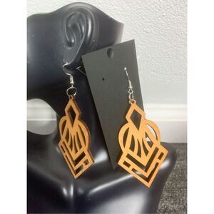 Ladies super cute tan colored laser cut intricate design handmade dangle earrings. Approximately 1.5" width. Lightweight. Made from hypoallergenic nickel and lead free metal.