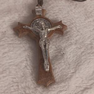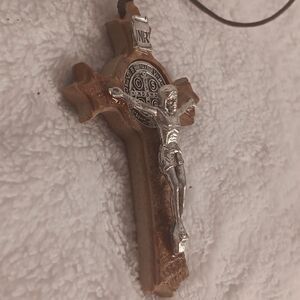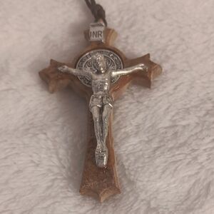 Wooden and Silver Crucifix Pendant