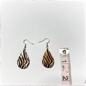 Chic pair of zebra striped earrings in tear drop shape. Ash hardwood. Laser cut and engraved on my glowforge and hand assembled by me.