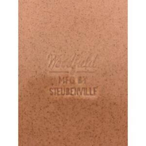 Woodfield dinnerware was a popular pattern produced by the Steubenville Pottery Company in Steubenville, Ohio, from 1941 to 1959. It features a simple leaf motif and was available in various solid colors, including Salmon Pink, Tropic Green, Golden Fawn, Dove Gray, and Rust Brown. While the line lacks the simplicity of mid-century modern dinnerware, it remains a popular vintage find.