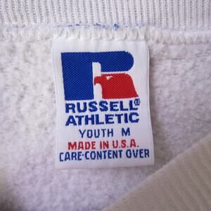 Tag details: "RUSSELL ATHLETIC" | "YOUTH M" | "MADE IN U.S.A." | "CARE-CONTENT OVER"