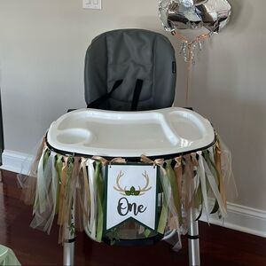 Woodland First Birthday Decorations ONE high chair banner and gold sparkly crown