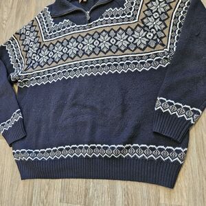 Woodland Trail Fair Isle 1/4 Zip Sweater Mens XXL Wool Blend Neutral Nordic Boho
