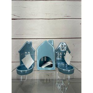 Woodland Wonders Blue Ceramic Decor And Candleholders 3 Piece Set