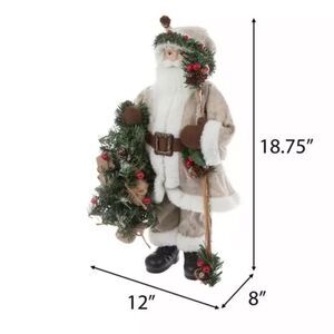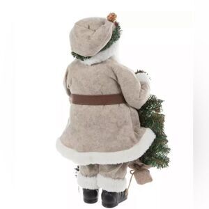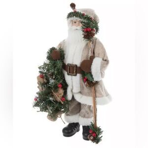 Finish off your woodsy display with this Woodland Santa With Greenery! This charming Santa Claus is seen wearing a fuzzy beige and ivory winter coat with an ornate belt buckle. He holds faux greenery in each of his hands, including a tree decorated with red berries, pinecones and wrapped presents. Pair this spirited character with other outdoor elements for a beautiful winter setup.