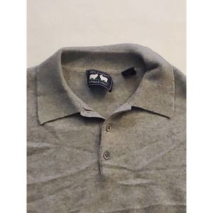 Woods & Gray Mens 100% Cashmere Polo Sweater Med. Gray Button Long Sleeve