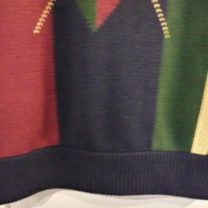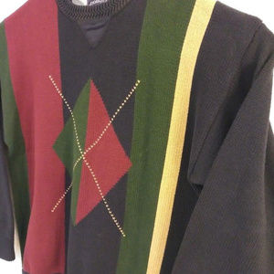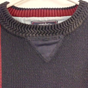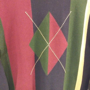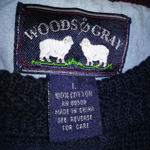 Style: Crewneck Material: 100% Cotton Size (Men's): L Pattern: Solid w/Diamond on front Brand: Woods & Gray Color: Multi-color This is a heavy 100% cotton crew neck sweater that is in very nice well kept condition. It has a very classy and classic look to it that will pretty much fit in most occasions. This sweater is in very nice and well kept pre-owned condition. There are no snags, rips, holes, stains, or manufacture defects found upon my own personal inspection.