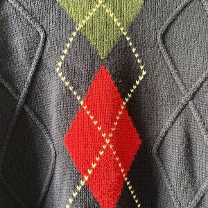 Woods & Gray cotton argyle sweater with some sweet details (look at the close-up pics). Men's size large. Flat, it measures 24 inches pit to pit. Made in Thailand. Probably 1990s.
