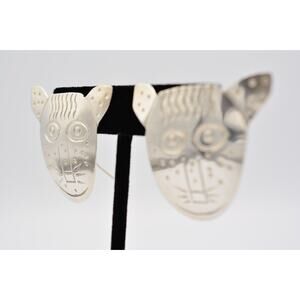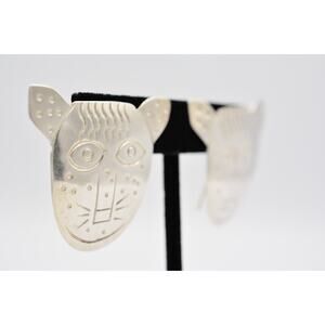 Woods Sterling Dangle Earrings 925 Silver Cat Tiger Animal Tribal Signed BinAI