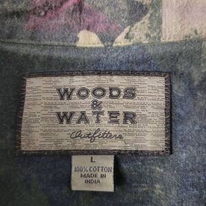 Woods & Water Moose Print Camouflage Button Up Shirt Sz L Hunting Outdoors Camo