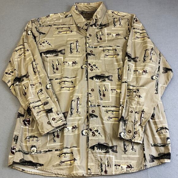 Woods Waters Fish Lure Shirt Mens Large Casual Button Down Fishing Outfitters
