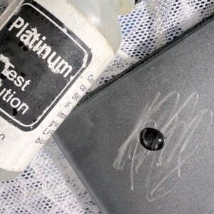 The metal has a gunmetal look, but tests as platinum. Unmarked.