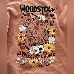Woodstock Hybrid Apparel Orange Crewneck Sweater with Graphic Design