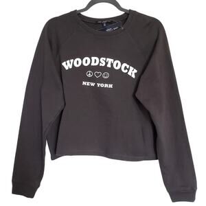 Woodstock Love Peace Happiness Crop Sweatshirt Size S Dark Gray Pullover NWT