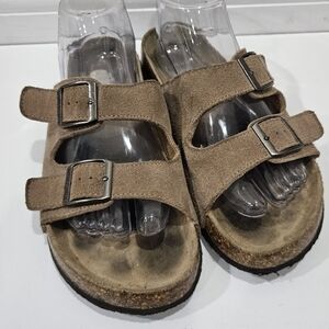 Woodstock Mens Birkenstock Sandals 8 M Bert Suede Brown Slip on Flat Buckle