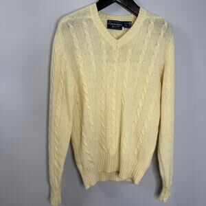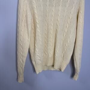 Woodstock by Bernard Sweater Wool V Neck Cable Knit Cream Men's L Preppy
