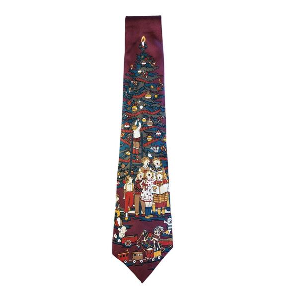Woodward Christmas Necktie Children Decorating the Tree Singing Silk Made in USA