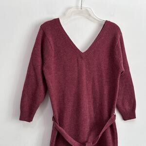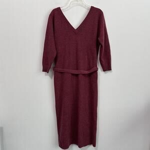 Woodward Lothrop Sweater Dress M Lambswool Double V Belted Knit Vintage Berry