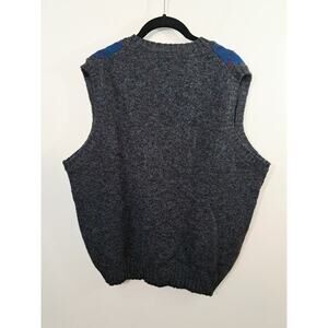 The Woodward Shop Men's Vintage Gray Argyle Sweater Vest in size Large is made from Shetland wool, featuring a tight-knit fabric that is breathable and perfect for colder seasons like winter, fall, and spring. This classic sleeveless vest has a V-neckline and a regular fit, making it suitable for various occasions such as parties, casual wear, or business events. The argyle/diamond pattern adds a touch of vintage charm to this stylish sweater vest, suitable for men looking for a versatile and timeless addition to their wardrobe. This is in gently used condition with no stains or holes and measures 22" from armpit to armpit and 27" from shoulder to hem.
