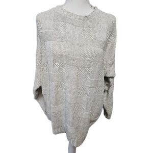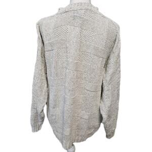 Woodward Vintage Sweater Basketweave Cream Linen Cotton Made In USA Fisherman XL