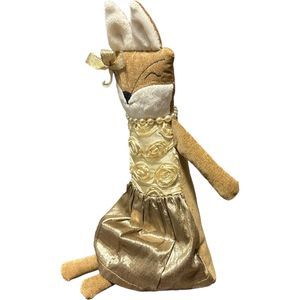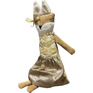 Woof & Poof Christmas Fox Gold Rose Dress Pearls Shelf Sitting Doll 2012 Rare.
