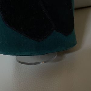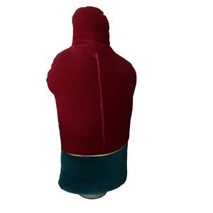 WOOF & POOF CRANBERRY RED & GREEN COTTON VELVETEEN MUSIC BOX 1994 HANDMADE IN CHICO, CA. U.S.A. Still in working condition and plays "Have Yourself a Merry Little Christmas" and slowly spins on base. HTF since W&P is no longer in business Measures 14 tall