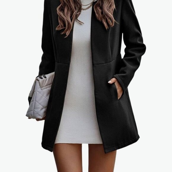 Features: Notch lapel, long sleeve, side pockets, open front, long wool blazer jackets for women