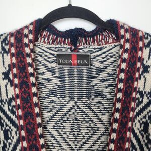Wool Blend Cardigan Womens Sz M Lagenlook Boho Southwestern Knitted Geometric