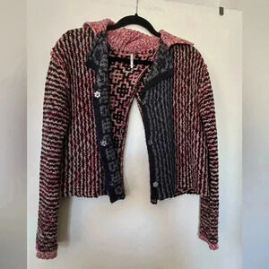 Adorable wool blend cropped sweater. Multicolor. Snap front. Split open back. Precious! Smoke free home.