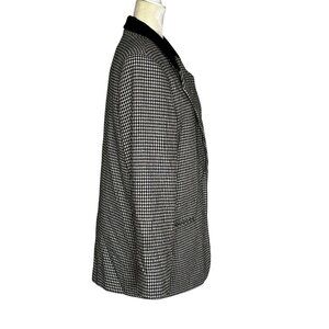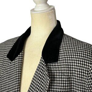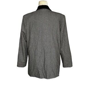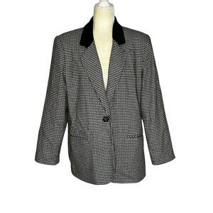Wool Blend Houndstooth Blazer Black Velvet Collar Oversized Boxy Fit Sz 14