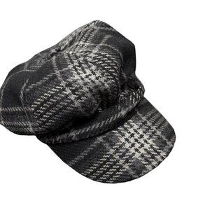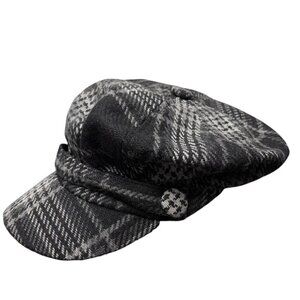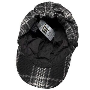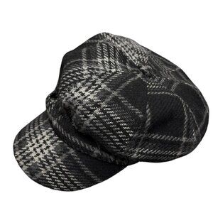Wool Blend Plaid Cabbie Newsboy Hat Black Gray Hot Topic NWT Women’s One Size