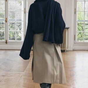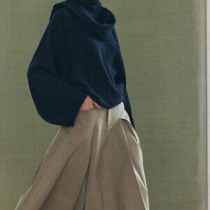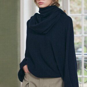 Never worn. Wool blend sweater in Navy Blue. Sweater with scarf collar and wide long sleeves, rib trim.