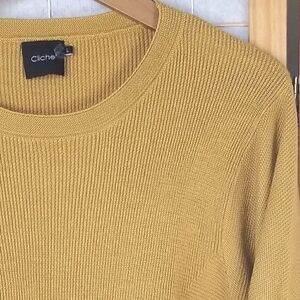 Cliche' Sweater Knit Mustard Gold 3/4 Sleeves with Bows Acrylic Wool Blend Large