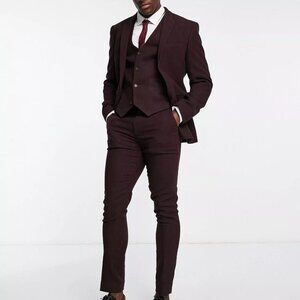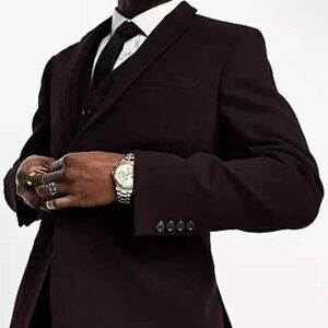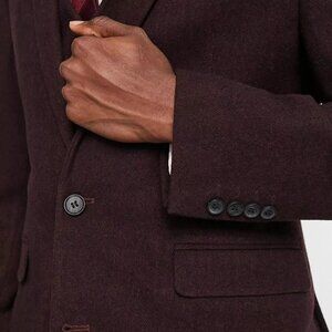 Wool Burgundy Herringbone Suit Jacket: 50L Pants: 38 x 32