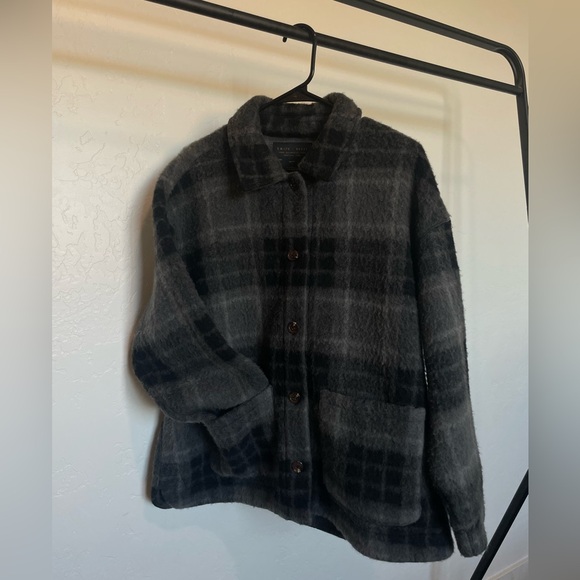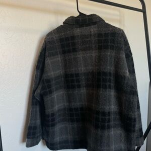Stylish plaid button-up jacket with a cozy design. Features a classic collar and front pockets. I am a small but bought a large for a more oversized, comfy fit.